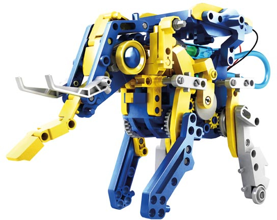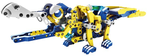Este robot funciona con energía solar e hidráulica y se puede transformar en doce animales y robots diferentes (mono, tiranosaurio, escorpión, excavadora, etc.) Los robots pueden desplazarse fácilmente y harán las delicias de los niños.\nEl robot hidráulico y solar 12 en 1 les enseñará a los niños todos los beneficios de las energías alternativas. No se necesitan pilas ya que funciona con energía solar y agua. Se desplaza cuando le da la luz del sol directamente, y esto hace que los niños jueguen con él en exteriores y exploren el mundo. Porque los modelos son réplicas de animales auténticos, los niños descubrirán sus características y su funcionamiento mientras juegan. Incluso podrán crear nuevas especies utilizando su imaginación. \n\n- 12 diferentes animales o robots:\n- mono\n- amo y perro\n- pterosaurio\n- tiranosaurio\n- elefante\n- cocodrilo\n- avestruz\n- escorpión\n- carretilla elevadora\n- buggy\n- excavadora\n- vehículo todo terreno\n- número de piezas: 230