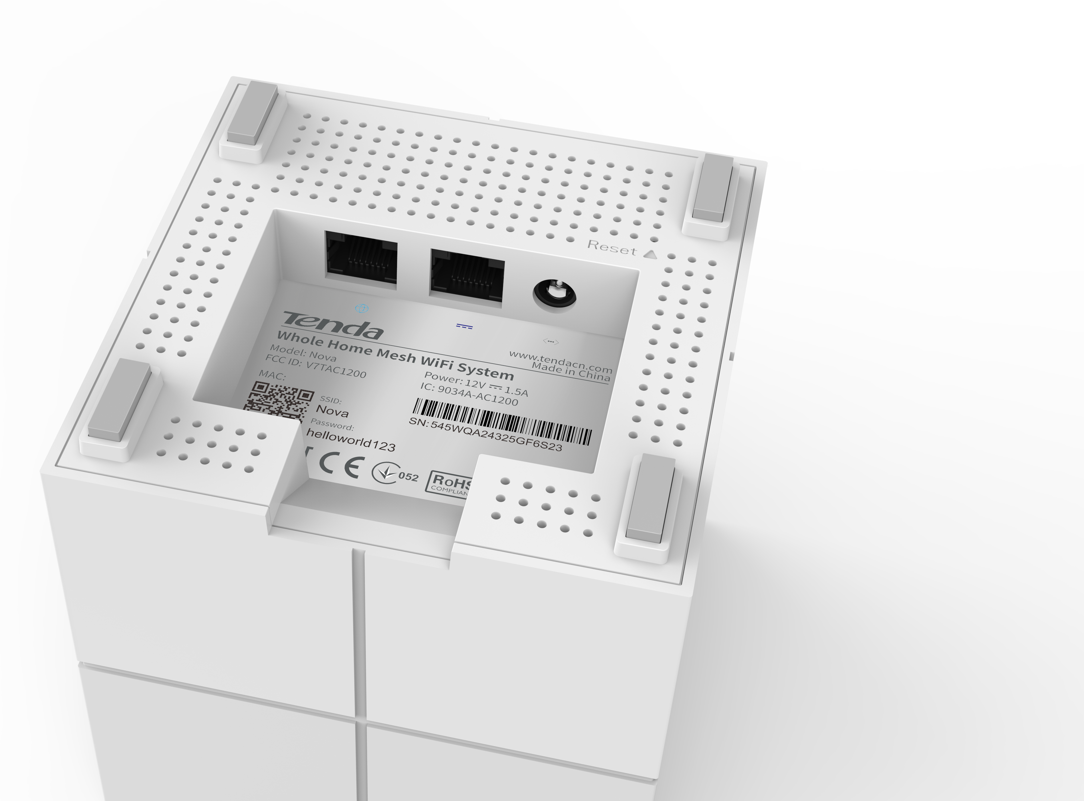Tenda Nova MW6. Banda Wi-Fi: Doble banda (2,4 GHz / 5 GHz), Estándar Wi-Fi: Wi-Fi 5 (802.11ac), Tasa de transferencia de datos WLAN (máx.): 867 Mbit/s. Tipo de interfaz Ethernet LAN: Gigabit Ethernet, Estándares de red: IEEE 802.11a,IEEE 802.11ac,IEEE 802.11b,IEEE 802.11g,IEEE 802.11n,IEEE 802.11r,IEEE 802.11v,IEEE..., Ethernet LAN, velocidad de transferencia de datos: 10,100,1000 Mbit/s. Algoritmos de seguridad soportados: WPA2-PSK, Seguridad con cortafuegos: Forbid UDP flood attack, Forbid TCP flood attack, Forbid flood attack. Tipo de producto: Router de sobremesa, Color del producto: Blanco. Tipo de antena: Interno