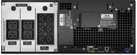 APC Smart-UPS On-Line. Topología UPS: Doble conversión (en línea), Capacidad de potencia de salida (VA): 6 kVA, Potencia de salida: 6000 W. Tipo de salida AC: C13 acoplador, C19 acoplador, Conector: Terminal, Cantidad de salidas AC: 10 salidas AC. Tecnología de batería: Sealed Lead Acid (VRLA), Capacidad de la batería: 902 VAh, Tiempo típico de respaldo a carga completa: 2,5 min. Factor de forma: Montaje en rack o Montaje en bastidor, Color del producto: Negro, Capacidad del rack: 4U. Ancho: 432 mm, Profundidad: 719 mm, Altura: 174 mm