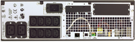APC Smart-UPS RT 3000VA. Capacidad de potencia de salida (VA): 3 kVA, Potencia de salida: 2100 W, Voltaje de entrada de operación (min): 100 V. Tipo de salida AC: C13 acoplador, C19 acoplador, Cantidad de salidas AC: 10 salidas AC. Tecnología de batería: Sealed Lead Acid (VRLA), Tiempo de recarga de la batería: 2,5 h. Factor de forma: Montaje en rack o Montaje en bastidor, Color del producto: Negro, Capacidad del rack: 3U. Ancho: 130 mm, Profundidad: 660 mm, Altura: 432 mm