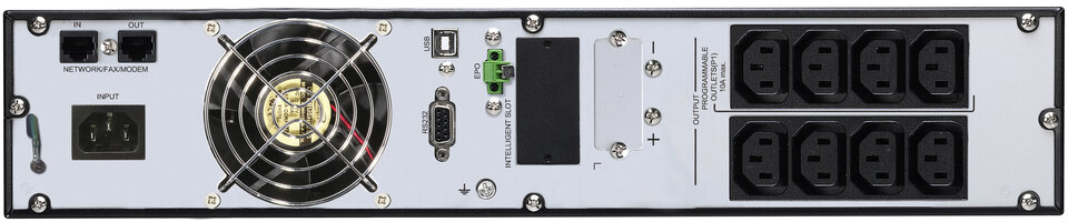 Salicru SLC-1000-TWIN RT2 LION. Topología UPS: Doble conversión (en línea), Capacidad de potencia de salida (VA): 1 kVA, Potencia de salida: 900 W. Tipo de salida AC: C13 acoplador, Conector: C14 acoplador, Cantidad de salidas AC: 8 salidas AC. Tecnología de batería: Fosfato de hierro-litio (LiFePo4), Tiempo de recarga de la batería: 3 h. Factor de forma: Montaje en rack/Torre o Montaje en bastidor/Torre, Color del producto: Negro, Tipo de control: Botones. Ancho: 438 mm, Profundidad: 410 mm, Altura: 88 mm