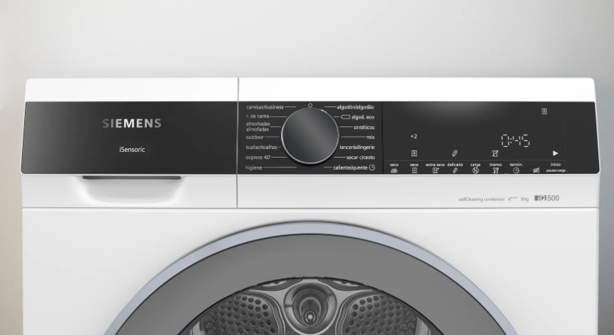 Nuestra secadora con menor consumo de energía.\nNuestras secadoras con etiquetado energético A+++ incorporan un innovador sistema de ahorro de energía que ofrece el mejor rendimiento, sin renunciar a nada. Gracias a la combinación de la tecnología de bomba de calor y la alta eficiencia del motor iQdrive, alcanzan la máxima clasificación energética. Confía en las secadoras Siemens de menor consumo energético para obtener un secado eficiente y con excelentes resultados en cualquier situación.\n\nElimina las pelusas automáticamente.\nEl condensador autolimpiante elimina las pelusas de la secadora para mantener siempre un funcionamiento eficiente que ahorre energía. Lo único que tienes que hacer es vaciar el filtro cuando esté lleno.\n\nSeca más en menos tiempo.\n¿Por qué esperar? Tu secadora con función varioSpeed garantiza un secado rápido sin importar el programa que utilices.\n\nSecado suave y de precisión.\nUna serie de sensores inteligentes controlan las prendas en todo momento para garantizar un secado uniforme y delicado, que además ahorra energía. Los sensores de temperatura previenen que los tejidos se calienten en exceso, mientras que los sensores de humedad evitan que se resequen demasiado. De esta forma, la ropa se seca con suavidad y precisión, por lo que no tienes que planchar tanto.\n\nExpress 40 min.\nLas prendas lavadas en el programa express 15 min se secarán a la perfección en tan solo 40 minutos gracias al control de temperatura optimizado y a la fase de enfriado personalizada.