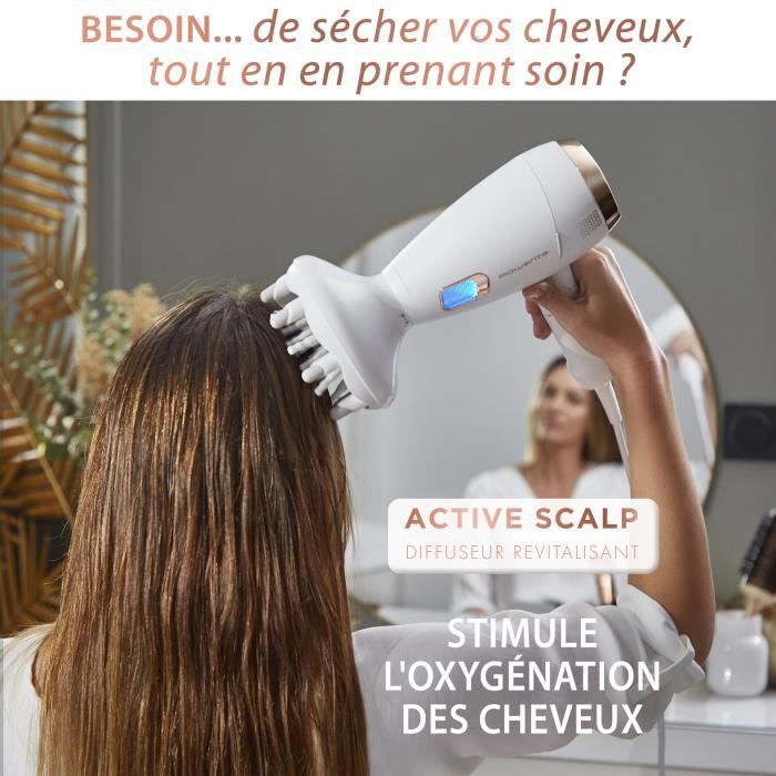 El secador de pelo Rowenta Scalp Care Ultimate Experience ofrece un secado de alto rendimiento y una experiencia única. Revoluciona tu rutina de belleza con un suave masaje en el cuero cabelludo que promueve la oxigenación del cabello fortificado. Las suaves vibraciones levantan el cabello desde la raíz para agregar volumen.