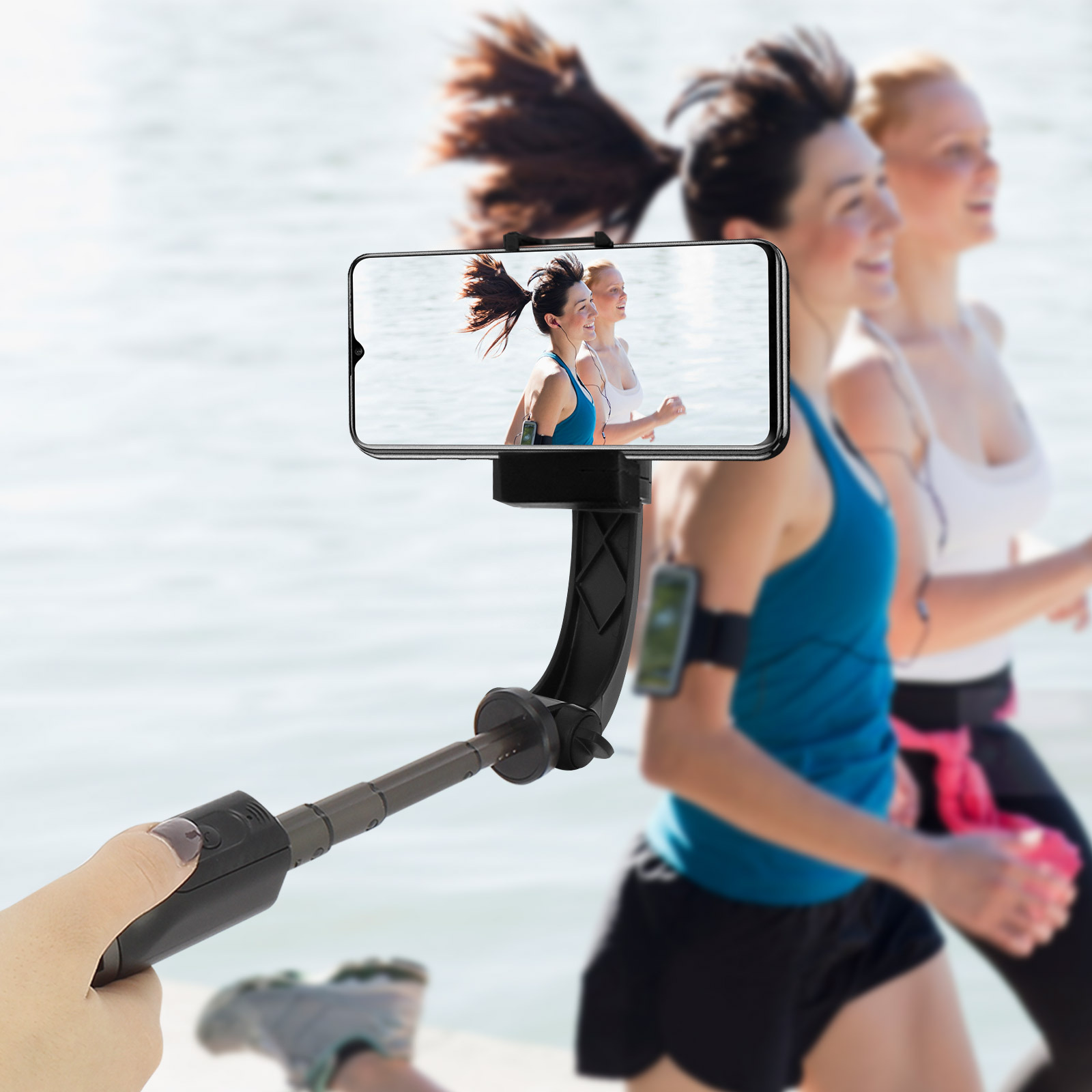 Estabilizador universal de la marca Akashi para realizar fotografías o grabar vídeos. Reduce vibraciones y temblores. Estabilizador 2 en 1: Palo Selfie / trípode. Mando a distancia bluetooth integrado. Extensible de 28 a 62 cm.