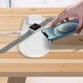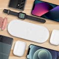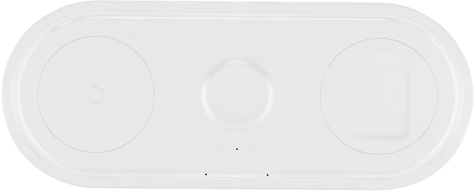Base de carga multidispositivo 4 en 1: 3 bases de inducción para smartphone / iPhone, Apple Watch, Airpods y 1 puerto de salida USB. Potencia máxima de 10W. Cumple con las normas CE y RoHS. LED que indica el estado de la carga. Diseño plano y compacto. • Características y Puntos fuertes: Base de carga 4 en 1, que le permite cargar sus dispositivos. Especialmente diseñado para iPhone, AirPods y Apple Watch. Reúna su iPhone, Airpods y Apple Watch para cargar. Una vez que sus dispositivos estén en su lugar, puede recargar más fácilmente y tener sus dispositivos a mano