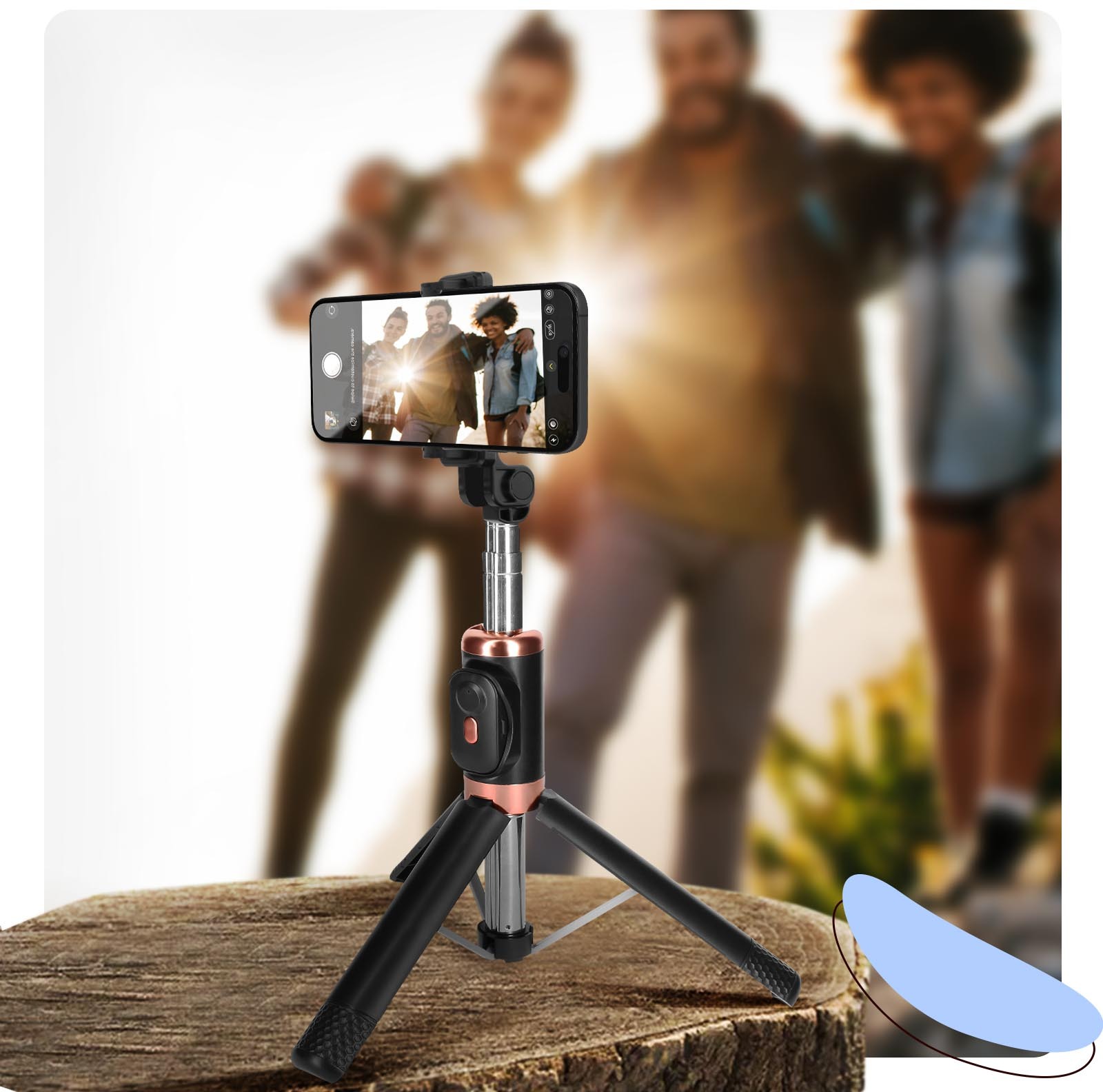 Hazte magníficos selfies con este palo Bluetooth para smartphone que se extiende hasta 80 cm. Incluye un mando a distancia Bluetooth con disparador a distancia, además de un cabezal giratorio de 360° para hacer fotos en horizontal o en vertical.Características y Puntos fuertes: Selfies, fotos de grupo y vlogs más fáciles con este palo BluetoothConviértelo en un trípode estable en un instante gracias a su función 2 en 1Soporte universal compatible con todos los smartphones de entre 62 mm y 92 mm de anchoIncluye un mando a distancia Bluetooth con disparador a distancia