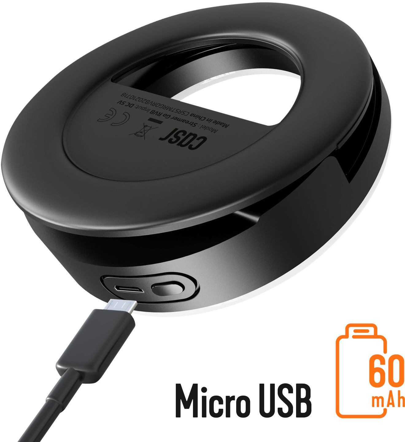 Pack de vlogging Casr Streamer Go. Incluye un anillo luminoso con 3 niveles de brillo y modos de color RGB para mejorar tus contenidos. Batería de 60 mAh. Recargable por USB. Clip de sujeción. Soporte plegable para smartphone para grabar sin vibraciones. • Características y Puntos fuertes: El pack de vlogging Streamer Go de Casr, para crear contenidos de éxito. Incluye un anillo luminoso que proporciona una iluminación de alta calidad para tus fotos y selfies. También lleva integrado un soporte para smartphone para que puedas apoyar el teléfono en él y filmar con facilidad.. Anillo luminoso con 36 LEDs con 3 niveles de intensidad y diferentes modos de color RGB, ajustables según tus necesidades