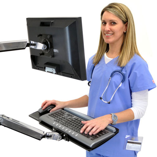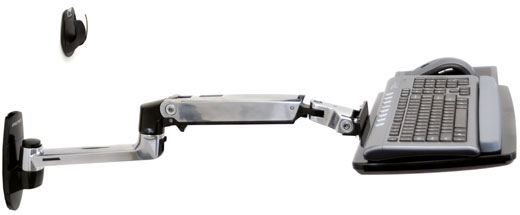 ¡Estructura resistente en aluminio pulido! El Brazo LX para teclado monta los teclados en una superficie vertical al mismo tiempo que proporciona movimiento de lado a lado, de elevación y hacia adelante o hacia atrás. Simplemente empuje y doble el teclado hasta un máximo de 11,7 cm de la pared, cuando no lo esté usando.\n\nBeneficios\n- La estructura metálica en aluminio pulido ofrece mayor duración y mejora la estética\n- Coloque el teclado para disfrutar de la máxima comodidad y productividad\n- La bandeja de teclado ergonómica con inclinación hacia atrás asegura la estabilidad de la muñeca en posición neutra durante la introducción de los datos e impide las lesiones por tensión repetitiva, al tiempo que aumenta la comodidad y la productividad\n- Junto con el brazo LX LCD, sirve para crear una estación de trabajo completa\n- Fácil de usar; instalación simple y operación sin esfuerzos\n- La bandeja del ratón se extrae a izquierda o derecha conforme a las preferencias del usuario\n- Idónea para espacios limitados, se pliega hasta 9 cm (3,5"") de la pared para guardarla\n- Gestión de cables integrada