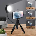 Trípode de escritorio para realizar fotos y vídeos estables con tu smartphone. Luz LED para mejorar la iluminación y evitar las sombras. 3 niveles de luminosidad. Soporte extensible de 55mm a 85mm. Giratorio 360º con bola RAM. Brazo flexible.