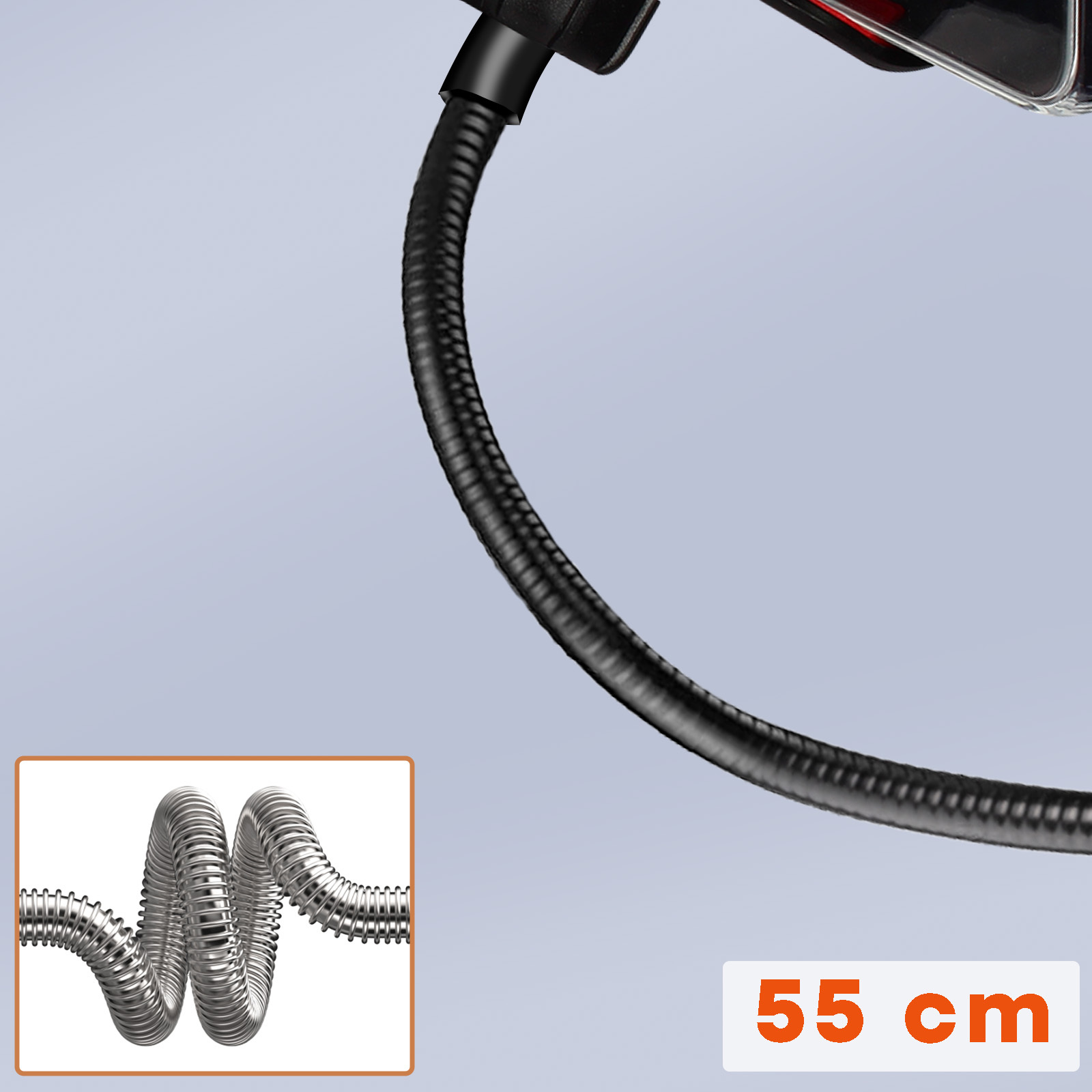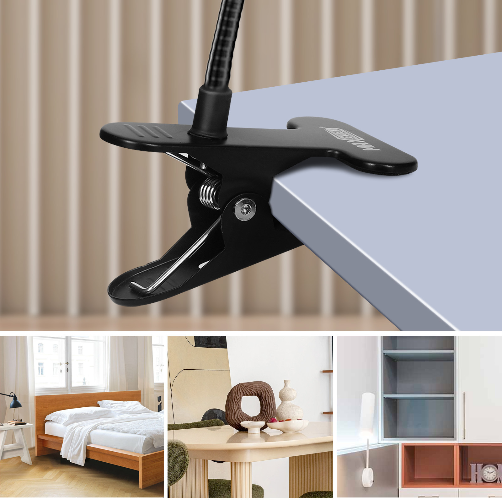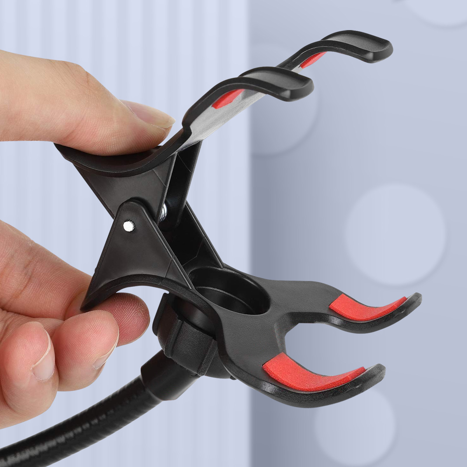 Soporte de Max excell. Permite mantener la pantalla del dispositivo a la vista y las manos libres. Se puede fijar al borde de una superficie plana gracias a su sujeción por clip. Brazo flexible y ajustable para un ángulo de visión óptimo / Longitud 55cm. • Características y Puntos fuertes: Soporte Smartphone con pinza universal diseñado por Max Excell. Permite colocar el dispositivo en el escritorio y mantener las manos libres. Además, su enganche de clip se adapta a cualquier tipo de soporte: cabecero, silla, armario, etc.. Varilla perfectamente flexible y ajustable de 55 cm de longitud