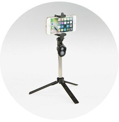 Consigue tus mejores fotos. Es un dispositivo Bluetooth con control remoto y un mini trípode plegable, que es adecuado para su teléfono móvil. Tiene un cabezal giratorio ajustable que le permite tomar fotos desde diferentes ángulos. Y también, hasta 90 grados de rotación vertical de la cabeza para usar la cámara de su teléfono móvil en posición horizontal o vertical, el brazo puede extenderse hasta 60 cm. Conecte y congele fácilmente su teléfono móvil en el clip, que tiene doble protección para evitar arañazos en la superficie de su dispositivo. Un accesorio realmente útil para tomar fotos selfie solo o con sus seres queridos desde cualquier ángulo y en cualquier lugar. Además, la fotografía remota es la nueva moda en el mundo de la ""selfie"" y esta tecnología facilita la toma de fotos.