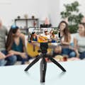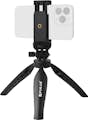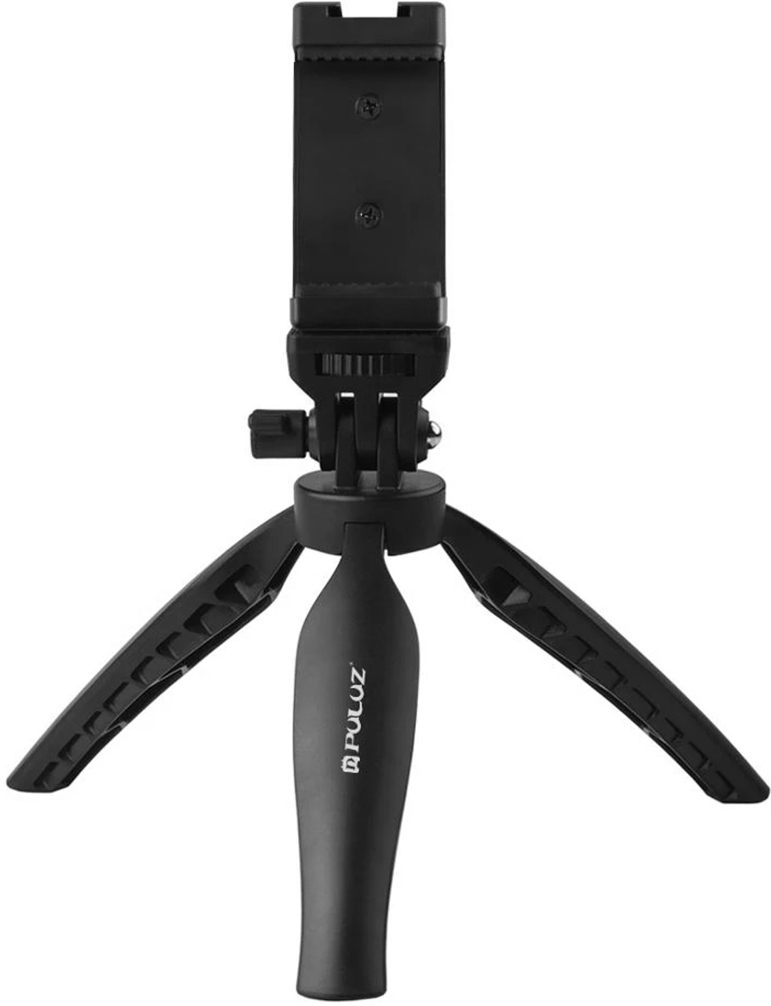 Trípode para smartphone con una anchura máxima de 90mm, de Puluz. Ajustable en un ángulo de 180°. Se puede transformar en asa ergonómica. Soporte para flash y micrófono. Compatible con la cámara. Pies antideslizantes. Soporte integrado para el móvil. • Características y Puntos fuertes: Trípode Puluz para mejorar tus selfies, fotos y vídeos. Perfectamente compatible con smartphones de hasta 90 mm de ancho. El trípode perfecto para llenar Facebook, Instagram o Snapchat con tus mejores fotos. Sujeción firme y segura del smartphone cuando se coloca en el clip
