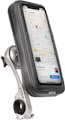 DISEÑADO A MEDIDA DEL MOTERO\nEl soporte de aluminio para manillar está diseñado para todos los motociclistas que conducen por carretera y quieren tener siempre el GPS bajo control.\nGracias a la ventana táctil de la funda, podrás utilizar el smartphone para consultar y cambiar de ruta si fuese necesario. Este accesorio se coloca en el centro del manillar para una visión óptima. No tendrás que quitar el soporte de aluminio entero, solo la funda para el teléfono.\n\n¿CÓMO SE FIJA?\nEste soporte se caracteriza por su moderno diseño en aluminio y sus dimensiones compactas que permiten una fácil instalación. El paquete incluye un destornillador para fijar el soporte, cuyo diámetro varía de 23 a 28 mm.\nFijar la funda del smartphone es muy sencillo: el soporte tiene un sistema de bloqueo y desbloqueo que garantiza un montaje rápido.\n\nEL SMARTPHONE ES TU PASAJERO\nLa funda protectora está diseñada para smartphones de hasta 6"": podrás introducir tu dispositivo en su interior de forma segura gracias a las dos cremalleras. En el paquete también podrás encontrar 4 plantillas de diferentes grosores (S, M, L, XL) para que tu dispositivo se ajuste perfectamente a la ventana táctil. Además, incluye un cordón de seguridad para asegurar la funda al manillar.\nEl soporte también está dotado de una articulación giratoria que permite girar la funda para tener siempre una visión óptima de la pantalla. Conducir bajo la lluvia ya no será un problema ya que la funda posee certificado IPX6, que protegerá tu smartphone del agua.\n\nENCUENTRA TU CAMINO\nEl soporte y la funda te darán emocionantes viajes con tu moto. Encuentra tu camino y sigue tu ruta ideal mientras te diviertes de forma segura.
