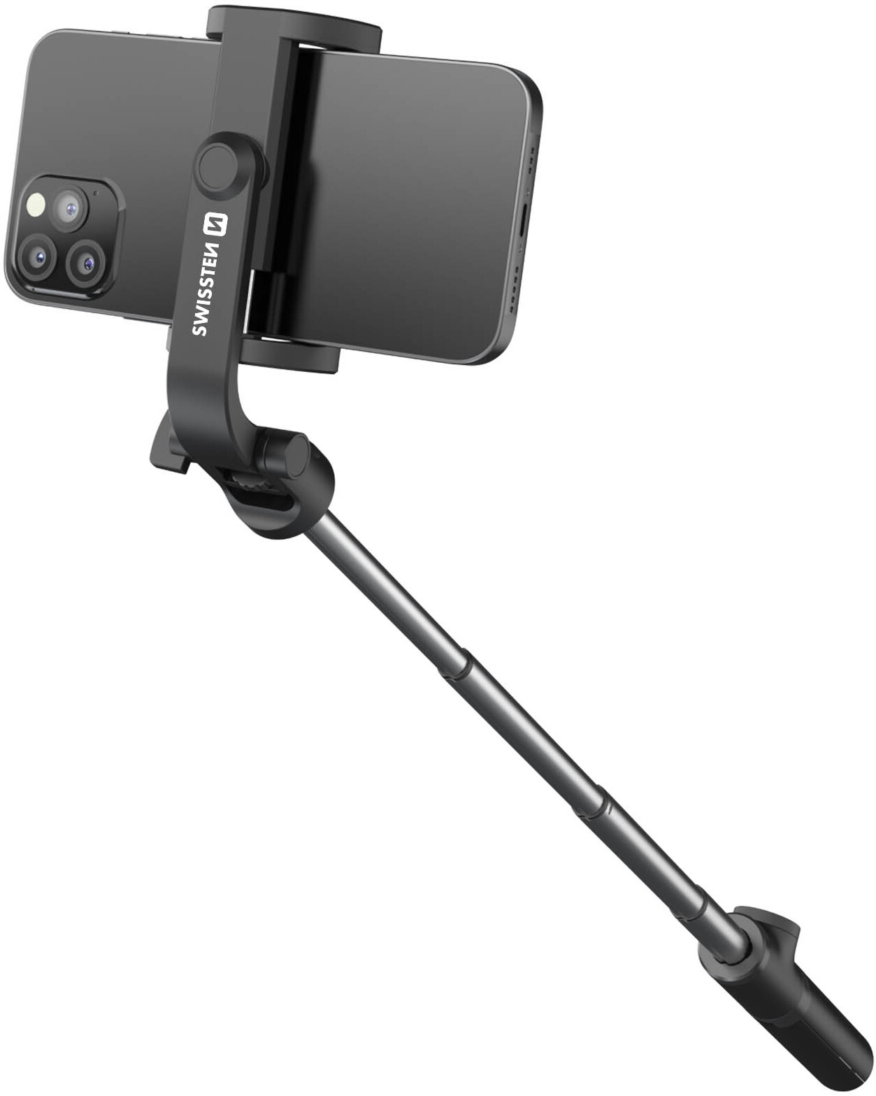 Elegante y práctico palo de selfie de Swissten. Con función de trípode para grabar con las manos libres. Mando Bluetooth extraíble para la captura a distancia. Poste telescópico extensible. Soporte giratorio para smartphone. Compatible con GoPro. • Características y Puntos fuertes: Toma selfies, fotos de grupo y vlogs con éxito con el palo selfie Swissten Tripod Pro. Conviértelo en un trípode estable en un instante con su función 2 en 1. Control Bluetooth extraíble para conectar con el smartphone y controlar las tomas. Soporte para smartphone universal y giratorio, permitiéndote usarlo en horizontal y vertical