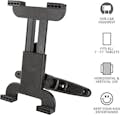 Sujeción segura\nCon el soporte de sujeción de tabletas en reposacabezas Thano de Trust para automóvil podrá montar fácilmente una tableta en el reposacabezas del coche. El soporte universal y de alta calidad sujeta firmemente la tableta para que los pasajeros de los asientos traseros estén entretenidos.\nSolución para tabletas\nEl Thano es compatible con todas las tabletas de hasta 195 mm de ancho (7-11 pulgadas) y ofrece una solución completa de sujeción de tabletas mientras se conduce. Gracias a su abrazadera de fijación ajustable, se puede sujetar firmemente la tableta incluso con su funda.\nEntretenimiento en el coche\nHaga que disfruten de una película o jueguen a un juego; con el soporte de sujeción de tabletas en reposacabezas Thano de Trust para automóvil seguro que a sus hijos el viaje más largo se les hará corto. Este soporte de tableta tiene un ángulo de visión totalmente ajustable para poder utilizar la tableta con orientación horizontal y vertical. Y está pensado para proyectar todo tipo de medios. Se puede acceder fácilmente a todos los botones y conectores de la tableta, por lo que se garantiza acceso total a la pantalla y a su visualización.\nFácil colocación\nEl resistente diseño del soporte tiene una sujeción segura y fácil que se puede fijar al reposacabezas de cualquier coche. Una abrazadera acolchada sujeta la tableta a fin de evitar que sufra arañazos.