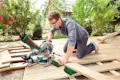 Sierra radial con función deslizante PCM 8S - Potencia absorbida: 1200 W - Ligera y compacta - Velocidad en vacío: 4.800 rpm - Diámetro nominal de la hoja 216 mm - Capacidad de corte de 0°/0° 65 x 220 mm - Capacidad de corte de 45° /0° 40 x 220 mm - Cortes a inglete precisos, de 0° a 48°.