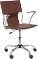 PIQUERAS Y CRESPO Silla de oficina ergonómica, regulable en altura y giratoria 360º Silla de oficina de elegante diseño, su estructura cromada y su tapizado en similpiel la hace idónea para cualquier tipo de oficina y para el hogar. También es buena para la habitación de los niños Detalles técnicos Respaldo ergonómico para una mayor adaptación a la espalda Asiento ergonómico y acolchado para una mayor comodidad del usuario. Asiento hecho con madera laminada de 10 mm de espesor. Espuma de 10 mm de espesor y 24 kg/m3 de densidad Asiento y respaldo tapizados en similpiel color marrón Brazos fijos cromados con pastilla acolchada tapizada en similpiel color marrón wengué Chásis cromado Regulable en altura mediante cilindro de gas de 10 cm (siendo la altura en su posición más baja de 45 cm y la altura en su posición más alta de 55 cm) Giratoria 360º Gas cromado Base cromada de alta resistencia de 5 radios Ruedas de nylon Otros detalles Favorece una buena postura integral para evitar posibles problemas de espalda Ergonómica 24 meses de garantía Instrucciones de montaje incluidas Fácil montaje Para pedidos de gran volumen, póngase en contacto con nosotros para consultar disponibilidad
