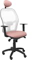 PIQUERAS Y CRESPO Silla de oficina ergonómica con mecanismo sincro, brazos regulables y ajustable en altura La unión perfecta entre diseño y ergonomía. Incluye refuerzo lumbar. Ideal para trabajar durante varias horas puesto que ayuda a reducir las lesiones derivadas de malas posturas. Ideal para la oficina y para el hogar. Fabricada integramente en España, lo que es sinónimo de calidad Detalles técnicos Respaldo ergonómico para una mayor adaptación de la espalda. Respaldo de malla transpirable Asiento ergonómico para una mayor comodidad del usuario Asiento interior de PVC con refuerzo panal. Asiento exterior de PVC de 20 mm de grosor Cabecero incluido Respaldo de malla transpirable en color blanco Asiento tapizado en tejido BALI color rosa pálido Brazos regulables en altura Mecanismo sincro que permite la regulación del respaldo y el asiento por separado Refuerzo lumbar Regulable en altura mediante cilindro de gas de 10 cm Giratoria 360º Telescópico color negro Base poliamida de alta resistencia de 5 radios y 60 cm de diametro, en color negro Ruedas de nylon Uso intensivo Otros detalles Favorece una buena postura integral para evitar posibles problemas de espalda Ergonómica 24 meses de garantía FABRICACIÓN ESPAÑOLA Instrucciones de montaje incluidas Fácil montaje Para pedidos de gran volumen, póngase en contacto con nosotros para consultar disponibilidad