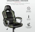 Estabilidad duradera\nEl sólido armazón de madera de la Ryon es capaz de aguantar tanto duras derrotas como reñidas victorias. El robusto armazón combinado con la base de 5 ruedas en forma de estrella puede soportar hasta 150 kg de peso y aporta la estabilidad que necesitas.\nPara la fase de preparación\nLa espuma de alta densidad cubierta con cuero PU proporciona la comodidad duradera que buscas para esas largas sesiones de juego. Los reposabrazos están acolchados para que los brazos puedan descansar durante el juego.\nSe adapta a sus deseos\nLa silla es totalmente giratoria en 360° para que puedas moverte libre y fácilmente. El elevador de gas de clase 4 te permite ajustar la silla a la altura perfecta, y la inclinación del asiento con posibilidades de bloqueo permite mirar la pantalla en el ángulo correcto en todo momento.\nPara todo tipo de jugador\nPonte cómodo y empieza a entrenar tus habilidades. La silla para juegos de Trust cuenta con una amplia gama de alturas de usuario recomendadas: entre 160 cm y 190 cm. Con sus prestaciones ajustables, la silla es el asiento perfecto para acompañarte hacia los primeros puestos de la clasificación.