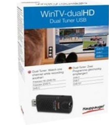Hauppauge WinTV-dualHD. Tipo de TV tuner: DVB-C,DVB-T,DVB-T2. Tipo de interfaz: USB. Color del producto: Negro. Sistema operativo Windows soportado: Windows 10,Windows 7,Windows 8,Windows Vista. Procesador mínimo: Intel Pentium 4 2.0 GHz, Pentium M 1.3 GHz or equivalent AMD Athlon XP, RAM mínima: 512 MB, Espacio mínimo de almacenamiento del disco: 1024 MB