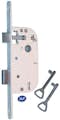Cerradura de embutir NF - Cerrojo estilo garganta de 1/2 vuelta - Pasador a 40 - Caja y placa frontal blancas - Extremos redondeados - Derecha.