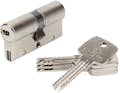 Cilindro de 30+30 mm en latón niquelado - Doble entrada - Nivel de seguridad 4 - 4 llaves reversibles - Resistencia a la rotura y torsión - Resistencia al taladrado, ganzúa y golpes