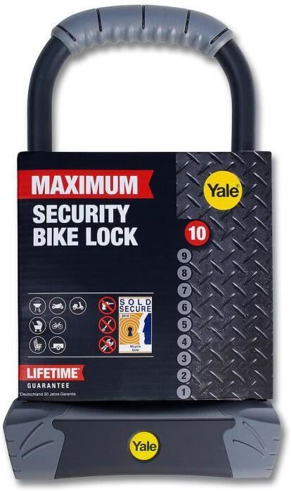 ¡Combinando un grillete de acero endurecido con cuatro puntos de bloqueo con un cilindro de alta seguridad, el candado en U de alta seguridad de Yale es una solución de primera elección para proteger su bicicleta contra los ladrones! Varias certificaciones justifican el nivel de seguridad de la cerradura Yale. Cuenta con la certificación Sold Secure Gold, el grado que ofrece el mayor nivel de seguridad.
