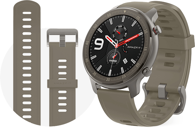 Hasta 24 días de autonomía - 12 modos deportivos - Alerta de llamadas, mensajes y app - Bluetooth 5.0 LE - GPS - Certificado 5ATM - Reproductor de música - Sensor de Ritmo CardiacoEl nuevo Huami Amazfit GTR destaca entre los smartwatches gracias a su elegante diseño renovado, que proporciona un aspecto de reloj de muñeca tradicional, pero con las prestaciones de los mejores smartwatches. Este modelo está desarrollado con distintos marcos que hacen que cambie no sólo el color, sino que le proporcionan una estructura muy resistente y liviana. Cuenta con un cristal Corning Gorilla Glass 3, que hace de este un modelo muy resistente a los golpes.Este nuevo modelo de Huami es perfecto para ti. Su pantalla es una tipo AMOLED retina de 1.39 pulgadas con una resolución de 454 x 454 píxeles y 326 ppi para ver toda la información con la mejor calidad. Así mismo, como hemos indicado antes, cuenta con un cristal resistente que le proporciona una gran calidad de uso. También, está desarrollado con materiales resistentes al agua y cuenta con una gran resistencia al agua y al polvo, pudiendo resistir hasta 5 ATMPero lo más importante de la nueva Huami Amazfit GTR es que se adapta perfectamente a tu deporte favorito. Este nuevo modelo cuenta con 12 modos deportivos que te permiten seguir usando este nuevo modelo en tu rutina diaria. Los deportes que admite son: correr outdoor, correr indoor, caminar, máquina elíptica, ciclismo outdoor, ciclismo indoor, natación outdoor, natación indoor, esquí, alpinismo, carrera campo a través, y rutina de ejercicio. Además, de ello, podrás utilizar muchas aplicaciones para poder estar conectado a los demás y que no te falte de nada: aplicacoines para la información metereológica, alerta de llamadas, reproductor de música, notificaciones de aplicaciones como Whatsapp , recordatorio de eventos, alarma, brújula, barómetro con medidor de altitud y una app para encontrar tu móvil.El nuevo Huami Amazfit GTR cuenta con muchos sensores para poder disfrutar de tu día a día. Con sensores como BioTracker PPG con sensor óptico (que nos permite monitorizar tu frecuencia cardíaca las 24 horas), acelerómetro de 6 ejes, sensor geomagnético, sensor de presión de aire, sensor capacitivo, y sensor de luz, y además está el GPS, que te permitirá salir al campo y a lugares que necesitas recorrer sin llevar tu móvil encima.El nuevo Huami Amazfit GTR cuenta con una de las autonomías más grandes del momento. Con hasta 24 días de duración en uso normal, este nuevo modelo de Huami puede llegar hasta los 54 días si optamos por desconectar el GPS y el sensor cardíaco en su uso diario, una cifra significativamente superior a los relojes inteligentes de su gama..Pantalla AMOLED de 326 PPI con una esfera muy elegante; para una experiencia más cómoda y única Increíble pantalla AMOLED de 326 PPI que hará que no dejes de mirar el reloj; puedes elegir entre una amplia gama de interfaces, para que tu Amazfit sea muy original,Una batería revolucionaria de 24 días de