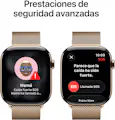 La mejor forma de seguir tu salud.\nConoce tu salud como nadie.\nEl Apple Watch Series 11 ofrece datos de salud detallados, como las notificaciones de frecuencia cardiaca alta o baja y calidad de sueño. Lleva tus entrenos a otro nivel con métricas avanzadas que te ayudan a superarte día a día. Y disfruta de hasta 24 horas de autonomía.\n\nPrestaciones destacadas\n- CONOCE LA CALIDAD DE TU SUEÑO — Calidad del Sueño te ayuda a entender mejor cómo has descansado y qué necesita tu cuerpo para que tus noches sean reparadoras.\n- AÚN MÁS DATOS DE SALUD — Recibe notificaciones de frecuencia cardiaca alta o baja, consulta tu datos de salud nocturnos con la app Constantes Vitales y mídete la saturación de oxígeno en sangre.\n- DISEÑO ESPECTACULAR — El Series 11 es tan fino y ligero que puedes llevarlo cómodamente a todas horas, desde cuando entrenas hasta cuando duermes, y llevar un registro de tus constantes vitales.\n- EL MEJOR COMPAÑERO DE FITNESS — Con métricas avanzadas para registrar todos tus entrenos, como Ritmo Objetivo, Zonas de Frecuencia Cardiaca, carga de ejercicio y mucho más. Además viene con tres meses gratis de Apple Fitness+.\n- UN SUBIDÓN DE AUTONOMÍA — Con hasta 24 horas de uso normal y carga rápida de hasta 8 horas en solo 15 minutos.\n- HECHO PARA DURAR — La pantalla de vidrio es el doble de resistente a los arañazos que la del Series 10. El Series 11 tiene un grado de resistencia al agua de 50 metros y cuenta con certificación IP6X de resistencia al polvo.\n- PRESTACIONES DE SEGURIDAD — El Series 11 detecta si has sufrido una caída brusca o un accidente grave de coche y llama a los servicios de emergencia, además de notificar a los contactos que hayas elegido. Aviso de Llegada informa automáticamente a quien quieras de que ya estás en tu destino.\n- CONECTA CON TU MUNDO — Haz llamadas, envía mensajes, escucha música, usa Siri y recibe notificaciones. El Series 11 (GPS) funciona con tu iPhone o una red wifi para mantenerte en contacto con todo lo que te importa.\n- CONECTA CON TU MUNDO ESTÉS DONDE ESTÉS — Manda mensajes, llama por teléfono, descarga música y podcasts y contacta con los servicios de emergencia sin llevar el iPhone encima. Y gracias a la conexión 5G, ahora puedes disfrutar de la hipervelocidad vayas donde vayas.