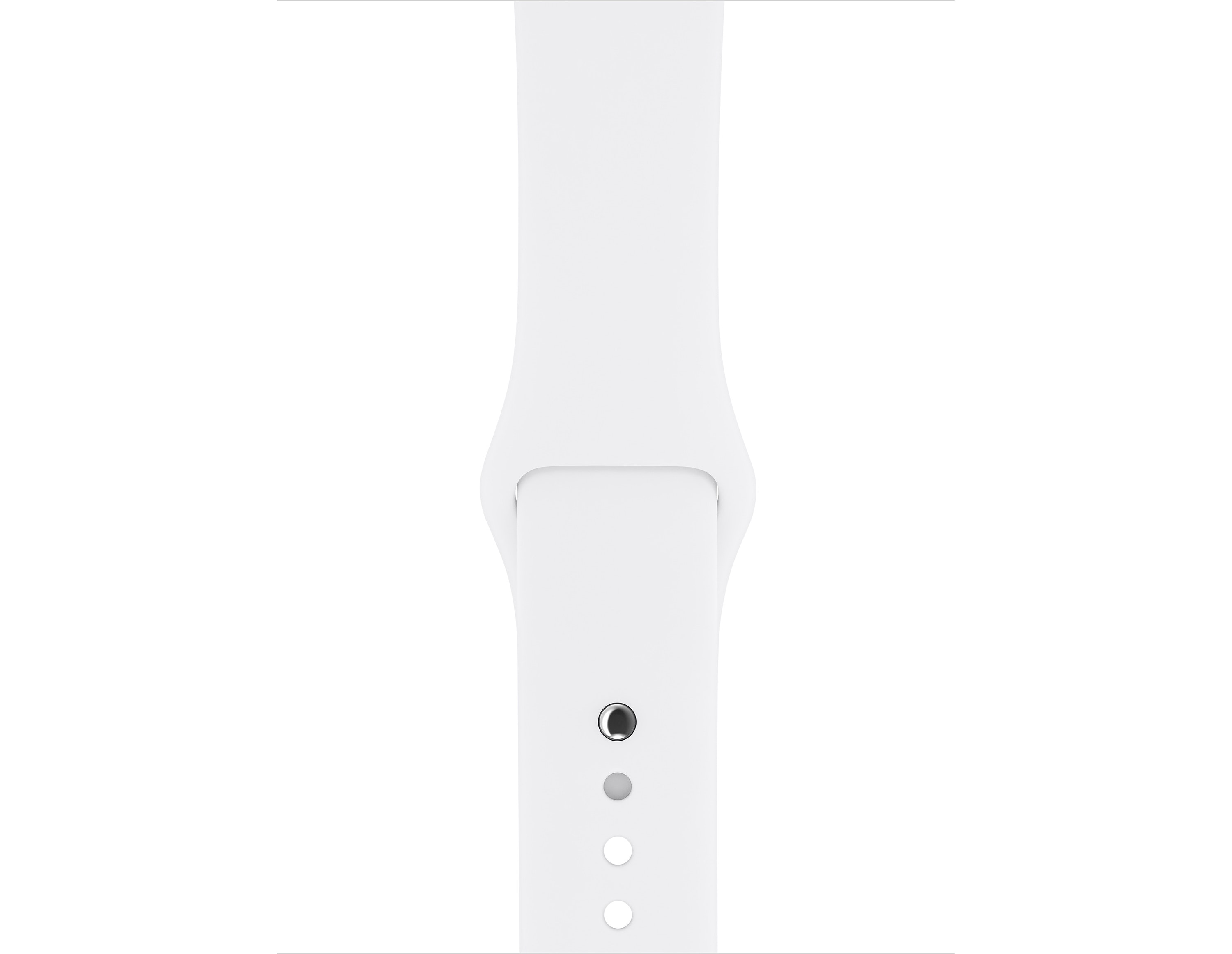 Apple Watch Watch Series 3. Tipo de visualizador: OLED, Resolución de la pantalla: 312 x 390 Pixeles, Pantalla táctil. Memoria flash: 8 GB. Wifi. GPS (satélite). Duración de la batería: 18 h. Peso: 32,3 g. Humedad: resistente al agua hasta: 50 m, Material de la carcasa: Aluminio, Color de la carcasa: Plata, Material de la banda: Fluoroelastómero, Color de banda: Blanco. Sistema operativo instalado: watchOS 5