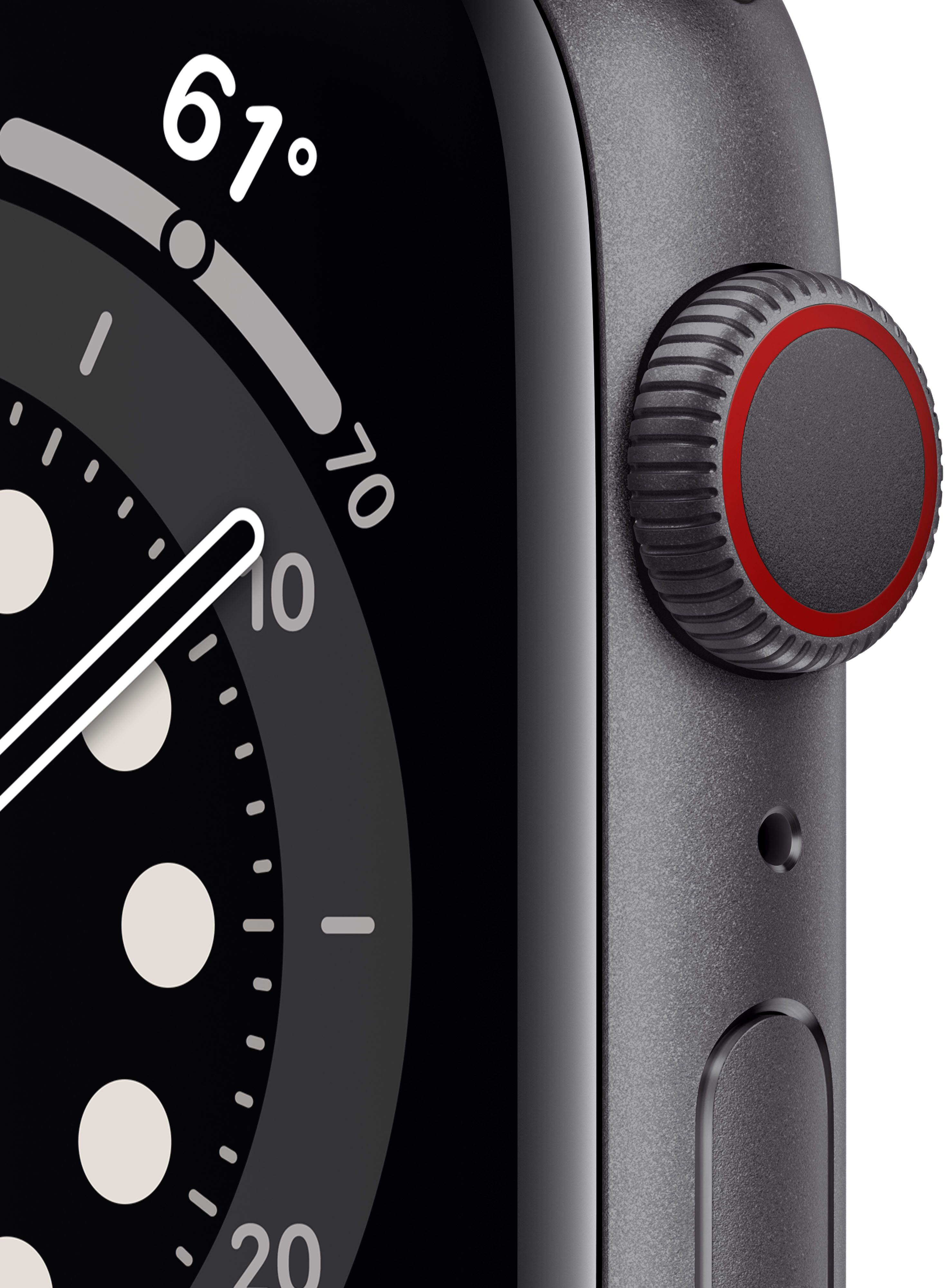 El futuro de la salud está en tu muñeca.\nEl Apple Watch Series 6 se adelanta a su tiempo con una app y un sensor revolucionarios capaces de medir tu oxígeno en sangre. Hazte un electro en cualquier momento y ten a mano tus datos de actividad gracias a la pantalla Retina siempre activa. Este reloj te ayudará a llevar una vida sana, activa y conectada con todo lo que te importa.\n\nOxígeno en sangre La innovación llega puntual.\nEl nivel de oxígeno en sangre (o saturación) es un indicador clave de tu bienestar general. Te ayuda a entender si tu cuerpo absorbe el oxígeno necesario y cómo lo distribuye. El Apple Watch Series 6 incorpora una app y un sensor muy innovadores, que pueden medir tu saturación de oxígeno en cualquier momento. Este reloj se preocupa de que tú funciones bien, día y noche.\n\nNuevo sensor. Nuevos datos.\nEl sensor de oxígeno en sangre consta de cuatro conjuntos LED y cuatro fotodiodos. Está integrado en el nuevo vidrio trasero del reloj, y trabaja mano a mano con la app Oxígeno en Sangre para determinar la saturación.\n\nPone el foco en lo importante.\nLos LED verdes, rojos e infrarrojos proyectan luz a los vasos sanguíneos de la muñeca, y los fotodiodos miden la cantidad de luz reflejada. Unos algoritmos avanzados calibran después el color de la sangre, lo que determina el nivel de oxígeno que contiene.\n\nECGUn electro en tu muñeca. En todo momento.\nGracias a la app ECG, el Apple Watch Series 6 es capaz de generar un electrocardiograma similar a los de derivación I.2 Esto supone un avance extraordinario para un dispositivo que llevas puesto. A los médicos les ofrece información crítica y a ti, más seguridad.\n\nTu dedo dice mucho de tu corazón.\nLos electrodos integrados en la Digital Crown y el cristal trasero se combinan con la app ECG para leer los impulsos eléctricos del corazón. Basta con apoyar el dedo en la Digital Crown para generar una onda de electrocardiograma en solo 30 segundos. La app ECG te dirá si el ritmo cardiaco muestra síntomas de fibrilación auricular (un tipo de arritmia cardiaca grave) o, por el contrario, un ritmo sinusal, que indica que el corazón late con normalidad.\n\nSueñoDespierta lo mejor de ti.\nDormir bien por la noche es fundamental si quieres aprovechar cada minuto del día. La nueva app Sueño te ayuda a crear una rutina para irte a la cama y hace un seguimiento de tus horas de descanso. De esta forma, te será más fácil cumplir tus objetivos. Dormir es todo un arte.\n\nEjercicio El Apple Watch se supera. Ahora te toca a ti.\nPonerte en forma y alcanzar nuevas metas está en tu mano. Encuentra la motivación que necesitas y registra con más precisión tus entrenamientos en el agua, en el gimnasio o al aire libre. Es hora de romper tus límites.\n\nPantalla Más brillante.\nA todas horas.\nLa pantalla Retina siempre activa es ahora más luminosa, aunque tengas la muñeca en reposo. Incluso cuando estés en la calle, podrás ver fácilment