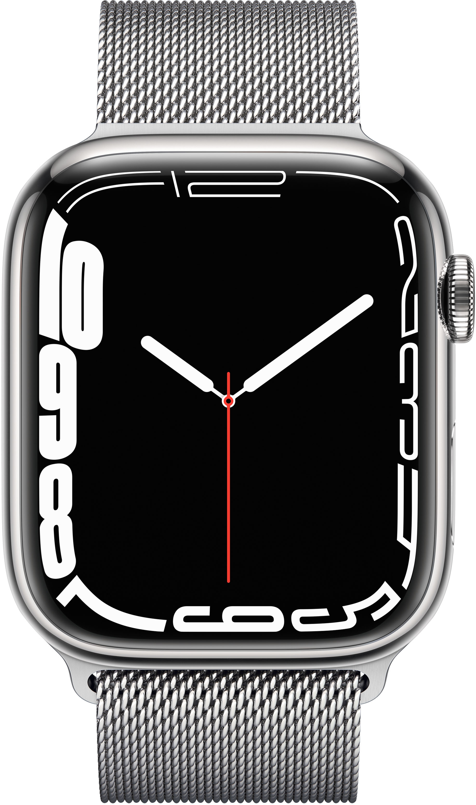 Apple Watch Series 7. Tipo de visualizador: OLED, Pantalla táctil. Memoria flash: 32 GB. Wifi. GPS (satélite). Peso: 51,5 g. Humedad: resistente al agua hasta: 50 m, Color de banda: Plata. Sistema operativo instalado: watchOS 8