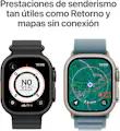 Una fuerza de la naturaleza.\nEl reloj de deporte y aventura definitivo.\nDescubre el reloj de deporte y aventura definitivo.\nEl Apple Watch Ultra 3 ahora incluye comunicaciones vía satélite, autonomía para varios días y la pantalla más grande y brillante en un Apple Watch.3 Por si eso fuera poco, también ofrece métricas avanzadas, Entrenos Personalizados, GPS de doble frecuencia y datos de salud detallados, como las notificaciones de frecuencia cardiaca alta o baja y calidad de sueño. Por algo se llama Ultra.\n\nPrestaciones destacadas\n- UN TODOTERRENO LISTO PARA LA ACCIÓN — El reloj de deporte y aventuras definitivo está hecho para durar, con una caja de titanio ultrarresistente y una pantalla de cristal de zafiro. Tiene grado de resistencia al agua de 100 metros, por lo que puede usarse para nadar, bucear y practicar deportes acuáticos a alta velocidad.\n- PANTALLA ULTRABRILLANTE — La pantalla es más grande y avanzada, con iluminación ampliada para que la veas desde todos los ángulos. Da tanta luz que puedes usarla como linterna.\n- AUTONOMÍA PARA VARIOS DÍAS — Hasta 42 horas de uso normal y hasta 72 horas en modo de bajo consumo. Eso significa que puedes registrar un entreno con el GPS y la medición de frecuencia cardiaca a tope durante 20 horas en modo bajo consumo.\n- TU COMPAÑERO IDEAL PARA SALIR A CORRER y ENTRENAR — GPS de doble frecuencia y alta precisión, Ritmo Objetivo, Zonas de Frecuencia Cardiaca, Entrenos Personalizados, potencia en carrera y carga de ejercicio. Si lo tuyo es el running, la natación o la bici, tienes todo lo que necesitas para cumplir tus objetivos.\n- PRESTACIONES DE SEGURIDAD — El Ultra 3 detecta si has sufrido una caída severa o un accidente grave. Si estás fuera de cobertura o sin wifi, con las comunicaciones vía satélite integradas puedes comunicarte por mensaje con los servicios de emergencia para pedir ayuda.\n- BOTÓN ACCIÓN PERSONALIZABLE — Púlsalo para tener acceso inmediato y preciso a un montón de funciones personalizables, como empezar un entreno o encender la linterna.\n- DATOS DE SALUD DETALLADOS — Recibe notificaciones de frecuencia cardiaca inusualmente alta o baja. Controla la calidad de tu descanso y consulta tu estado de salud diario en la app Constantes Vitales6 y mídete la saturación de oxígeno en sangre.\n- LA LIBERTAD TE LLAMA — Comunícate por teléfono y escucha música y podcasts con los AirPods o a través del altavoz del reloj, todo sin llevar el iPhone encima. Y gracias a la conexión 5G, ahora puedes disfrutar de la hipervelocidad en tus conexiones vayas donde vayas.\n- CORREAS INNOVADORAS — El Ultra 3 tiene cuatro tipos de correa que combinan diseño y versatilidad, pensados para acompañarte en todo lo que haces, desde sudar la camiseta en el gym hasta salir de fiesta.\n