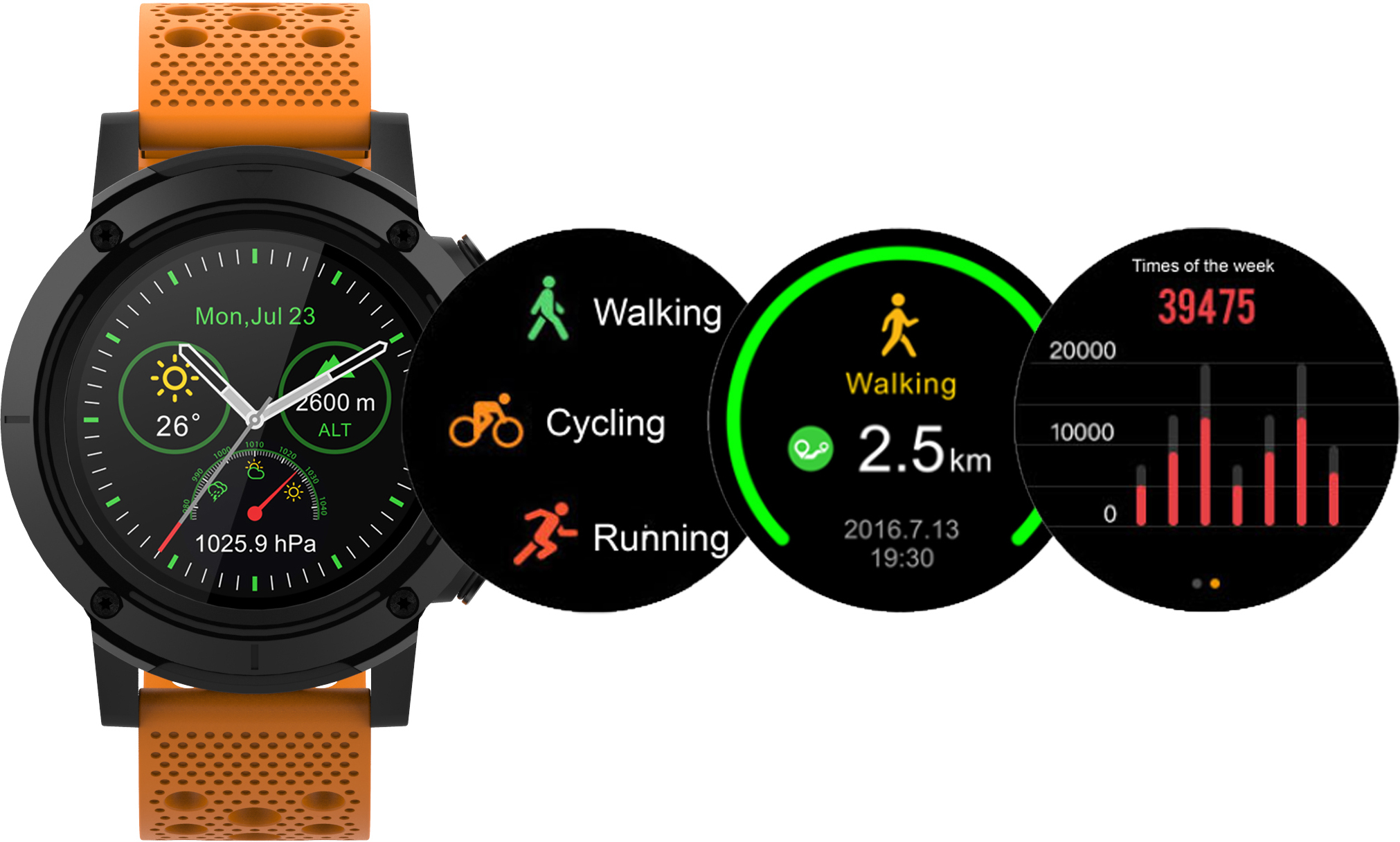 Denver SW-510ORANGE. Diagonal de la pantalla: 3,3 cm (1.3""), Pantalla táctil. GPS (satélite). Capacidad de batería: 500 mAh. Peso: 260 g. Color de banda: Naranja, Tamaño de banda: Talla única