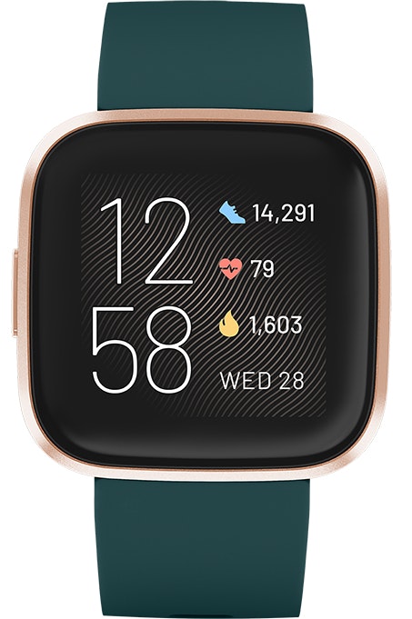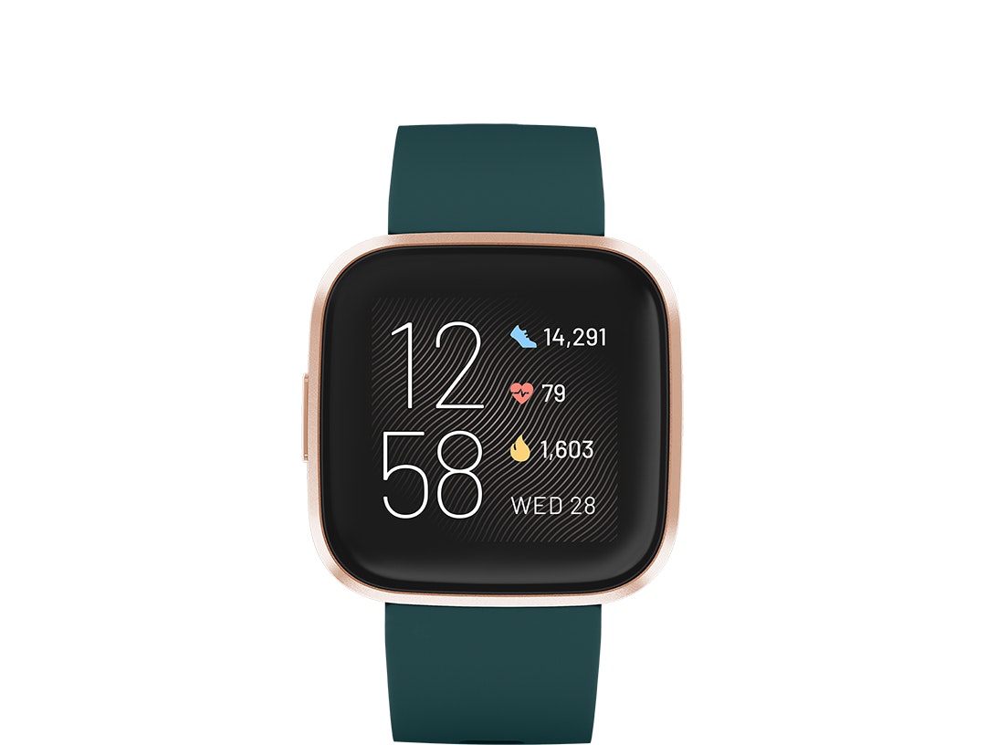 Fitbit Versa 2. Diagonal de la pantalla: 3,55 cm (1.4""), Tipo de visualizador: AMOLED, Resolución de la pantalla: 300 x 300 Pixeles, Pantalla táctil. Wifi. Capacidad de batería: 165 mAh. Peso: 38 g. Humedad: resistente al agua hasta: 50 m, Material de la carcasa: Aluminio, Color de la carcasa: Negro, Oro, Material de la banda: Silicona, Color de banda: Verde