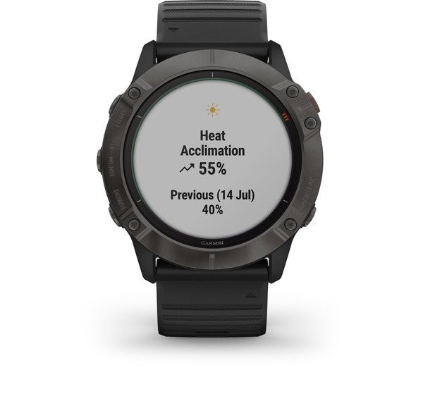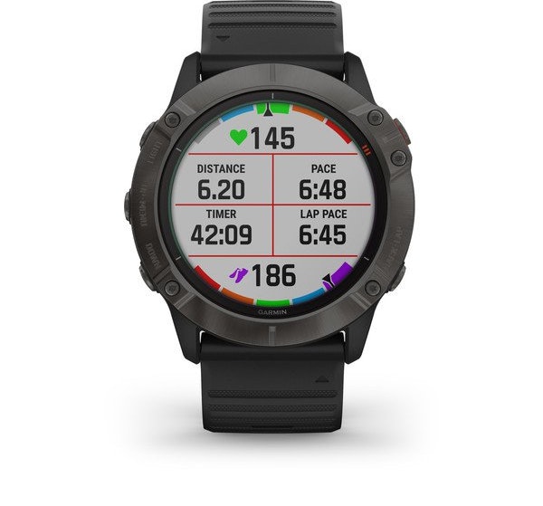 Garmin fenix 6X Pro Solar. Diagonal de la pantalla: 3,56 cm (1.4""), Resolución de la pantalla: 280 x 280 Pixeles, Pantalla táctil. Memoria flash: 32 GB. Wifi. GPS (satélite). Peso: 82 g. Material de la carcasa: Carbono, Titanio, Color de la carcasa: Gris, Color de banda: Negro
