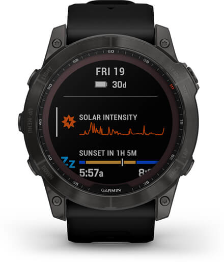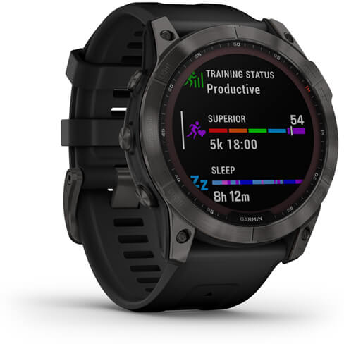 Garmin fenix 7X. Diagonal de la pantalla: 3,56 cm (1.4""), Tecnología de visualización: MIP, Resolución de la pantalla: 280 x 280 Pixeles, Pantalla táctil. Wifi. GPS (satélite). Peso: 89 g. Material de la banda: Silicona, Color de banda: Negro