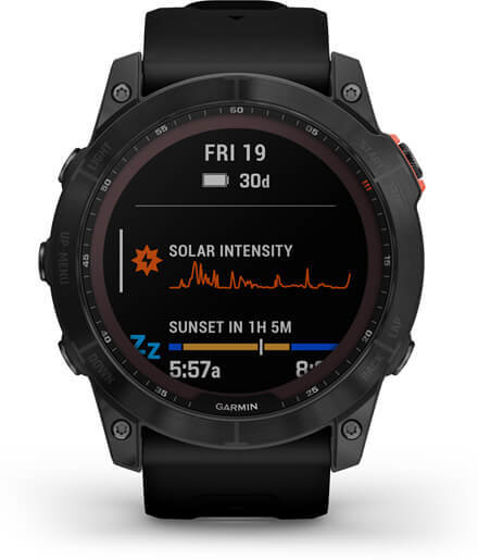 Enfréntate a cualquier desafío atlético o al aire libre con el resistente reloj multideporte con GPS fenix 7X Solar. Su lente de carga solar Power Glass ™ utiliza la energía del sol para prolongar la vida útil de la batería, alimentando funciones de entrenamiento avanzadas, aplicaciones deportivas, sensores de monitoreo de salud y bienestar y más..Controla tu dispositivo fenix 7X Solar mediante los botones o con la pantalla táctil receptiva para un acceso rápido y fluido a todas las funciones y actividades. la funcionalidad táctil se puede activar y desactivar. Este modelo ofrece una linterna LED integrada.,Perfiles de actividad preinstalados de running, natación, ciclismo, MTB, caminar, remar, esquiar, golf, surf, windsurf, escalar, pádel y muchos más. Funciones avanzadas como ClimbPro, métricas de stamina, predictor de carrera y más.,Descarga mapas TopoActive de todo el mundo. Selecciona la cobertura que necesites y actualiza los mapas directamente al reloj a través de Wi-Fi. Mapas SkiView preinstalados de más de 2.000 estaciones de esquí. Almacena música directamente en el reloj gracias a la memoria interna.,Gracias a la carga solar disfruta de una batería de hasta 37 días en modo reloj inteligente, 122 horas en modo GPS y 139 días en modo GPS Expedition. Conectividad Wi-Fi, ANT+ y Bluetooth. Recibe notificaciones inteligentes directamente en tu reloj y paga con él gracias a Garmin Pay.,Analiza tu nivel de bienestar. Registra en dos minutos tu frecuencia cardíaca, pulsioximetría, respiración y estrés para analizarlo posteriormente en Garmin Connect, incluso se puede exportar en PDF. Información completa de las etapas de sueño, con puntuación y recomendaciones.Especificaciones: .Marca: Garmin . | Color: Negro . | Peso del producto: 82 Gramos . | Componentes incluídas: ?Documentación, Fenix 7X, Cable de carga/datos . | Other display features: ?Inalámbrico . | Otras características: ?Bluetooth, Impermeable, Pantalla táctil . | Connectivity technologies: ?Bluetooth, Wi-Fi, ANT+ . | Entrada de interfaz humana: ?Pantalla táctil, Botones . | Número de modelo del producto: ?010-02541-01 . | Dimensiones del producto: ?5.1 x 5.1 x 1.49 cm; 82 gramos . | Wireless communication technologies: ?Bluetooth, Wi-Fi