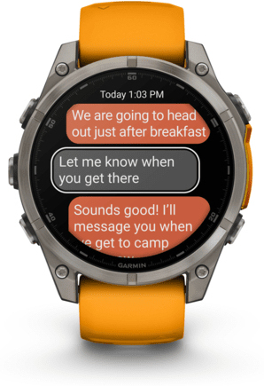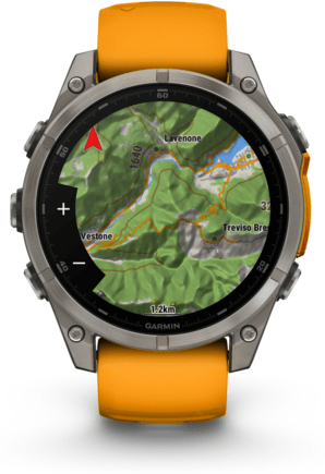 Garmin fenix 8. Diagonal de la pantalla: 3,56 cm (1.4""), Tecnología de visualización: AMOLED, Resolución de la pantalla: 454 x 454 Pixeles, Pantalla táctil. Memoria flash: 32 GB. Wifi. GPS (satélite). Humedad: resistente al agua hasta: 40 m, Material de la banda: Silicona, Color de banda: Negro, Naranja, Tamaño de banda: Talla única