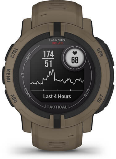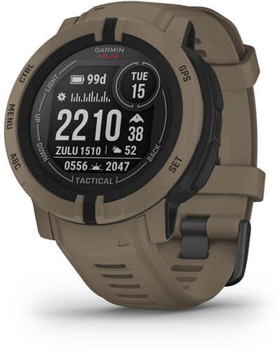 Este resistente reloj inteligente con GPS está equipado con características tácticas específicas y tiene carga solar para que sigas adelante.,El Smartwatch resistente, robusto, con GPS y funciones GAMER para compartir tus estadísticas mientras te preparas para la victoria..Disfruta de lo que más te gusta con perfiles de actividad preinstalados para correr, nadar, ciclismo, MTB, entrenamiento de fuerza, escalada en interiores, golf, yoga, pilates y mucho más; También incluye actividades multideporte como triatlón o swimrun,Recibe notificaciones inteligentes de tu teléfono directamente en la muñeca, monitoriza tu energía corporal con Body Battery, revisa la puntuación y etapas del sueño y comprueba tu edad fisiológica según tu rendimiento y actividades,Entrena de forma consciente con el VO2 max; Después de cada entrenamiento, muestra el tiempo de recuperación estimado, para saber cuando estarás listo para la siguiente sesión,Sensores GPS, GLONASS y Galileo para registrar tus actividades en los entornos más desafiantes; Descarga pantallas personalizadas, agrega campos de datos y obtén aplicaciones y widgets desde la aplicación Connect IQ,Con Instinct 2 Solar podrás obtener una autonomía en modo reloj inteligente ilimitada, y en modo GPS de hasta 48 horas (asumiendo 3 horas de sol al día, con 50;000 lux); Además, las versiones solares incluyen la función Garmin Pay, para que puedas pagar directamente desde tu relojEspecificaciones: .Marca: Garmin . | Color: Coyote Tan . | Método de control: Tocar . | Tipo de asignación: Sin mapas . | Dispositivos compatibles: PC, IPhone, Android . | Entrada de interfaz humana: Botones . | Tecnología de conectividad: Bluetooth, ANT+ . | Dimensiones del producto: largo x ancho x alto. | Resolución de la pantalla: 176 x 176 Pixeles. | Material de la banda: Silicona. | Tamaño de muñeca: 135 - 230 mm. | Posicionamiento de mercado: Reloj inteligente. | Tamaño de la pantalla (HxV): 23 x 23 mm