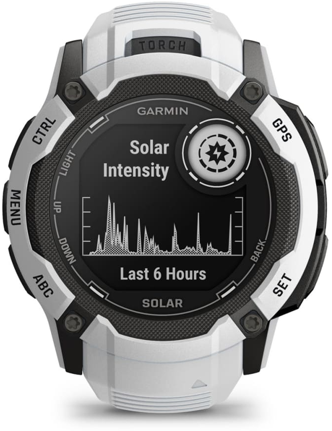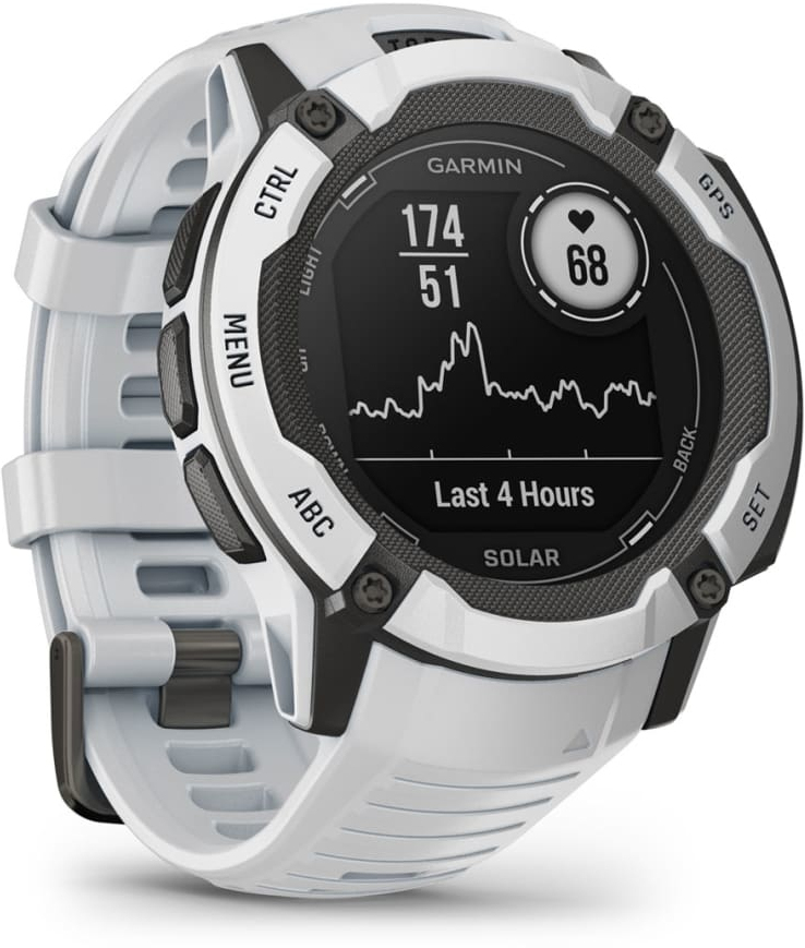 Garmin Instinct 2X Solar. Diagonal de la pantalla: 2,79 cm (1.1""), Tecnología de visualización: MIP, Resolución de la pantalla: 176 x 176 Pixeles, Pantalla táctil. GPS (satélite). Peso: 67 g. Material de la banda: Silicona, Color de banda: Blanco, Tamaño de banda: Talla única