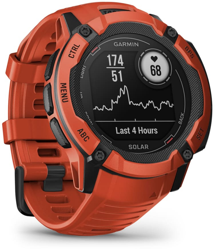 Garmin Instinct 2X Solar. Diagonal de la pantalla: 2,79 cm (1.1""), Tecnología de visualización: MIP, Resolución de la pantalla: 176 x 176 Pixeles, Pantalla táctil. GPS (satélite). Peso: 67 g. Material de la banda: Silicona, Color de banda: Rojo, Tamaño de banda: Talla única