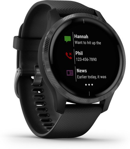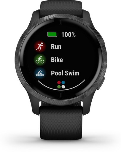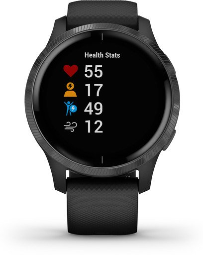 Garmin Venu. Tipo de visualizador: AMOLED, Resolución de la pantalla: 390 x 390 Pixeles, Pantalla táctil. Wifi. GPS (satélite). Peso: 46,3 g. Material de la banda: Silicona, Color de banda: Negro