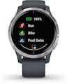 Garmin Venu. Tipo de visualizador: AMOLED, Resolución de la pantalla: 390 x 390 Pixeles, Pantalla táctil. Wifi. GPS (satélite). Peso: 46,3 g. Material de la banda: Silicona, Color de banda: Gris