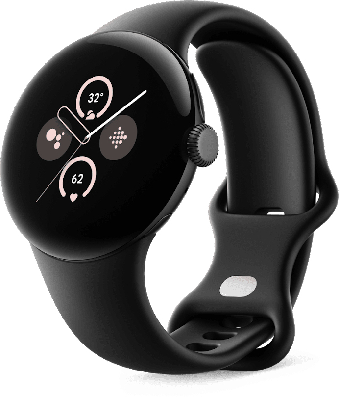 Google Pixel Watch 2. Tecnología de visualización: AMOLED, Pantalla táctil. Capacidad de RAM: 2000 MB, Memoria flash: 32 GB. Wifi. GPS (satélite). Capacidad de batería: 306 mAh. Peso: 31 g. Material de la banda: Fluoroelastómero, Color de banda: Negro, Tamaño de banda: S/L. Sistema operativo instalado: Wear OS