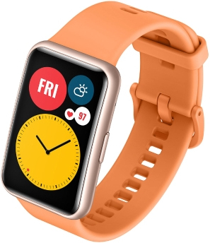 Huawei WATCH Fit. Diagonal de la pantalla: 4,17 cm (1.64""), Tipo de visualizador: AMOLED, Resolución de la pantalla: 456 x 280 Pixeles, Pantalla táctil. GPS (satélite). Capacidad de batería: 180 mAh. Peso: 21 g. Material de la banda: Silicona, Color de banda: Naranja
