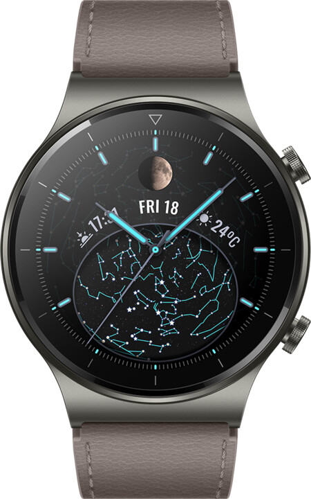 Huawei WATCH GT 2 Pro. Diagonal de la pantalla: 3,53 cm (1.39""), Tipo de visualizador: AMOLED, Resolución de la pantalla: 454 x 454 Pixeles, Pantalla táctil. Memoria flash: 4 GB. GPS (satélite). Peso: 52 g. Humedad: resistente al agua hasta: 50 m, Material de la banda: Cuero, Color de banda: Gris