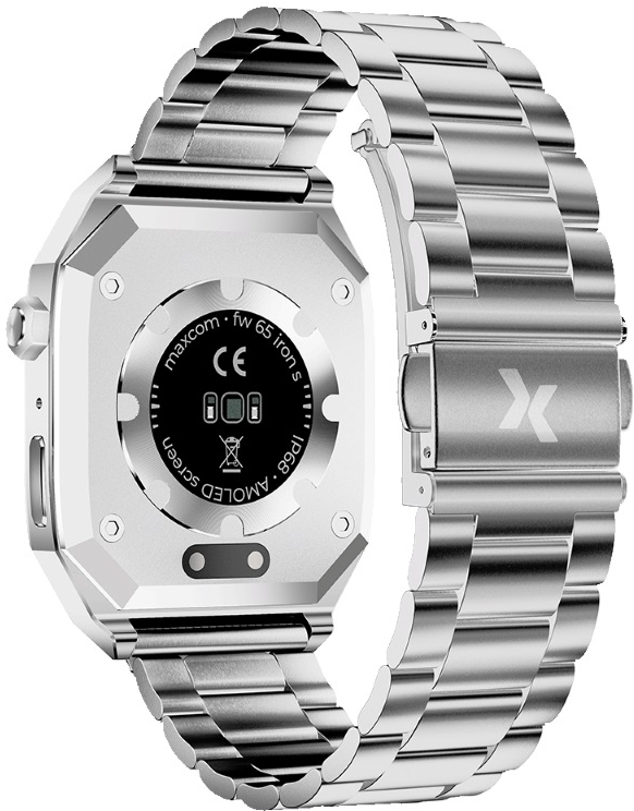 MaxCom FW65 Iron S. Diagonal de la pantalla: 4,95 cm (1.95""), Tecnología de visualización: AMOLED. Capacidad de batería: 340 mAh. Peso: 59 g. Color de banda: Plata