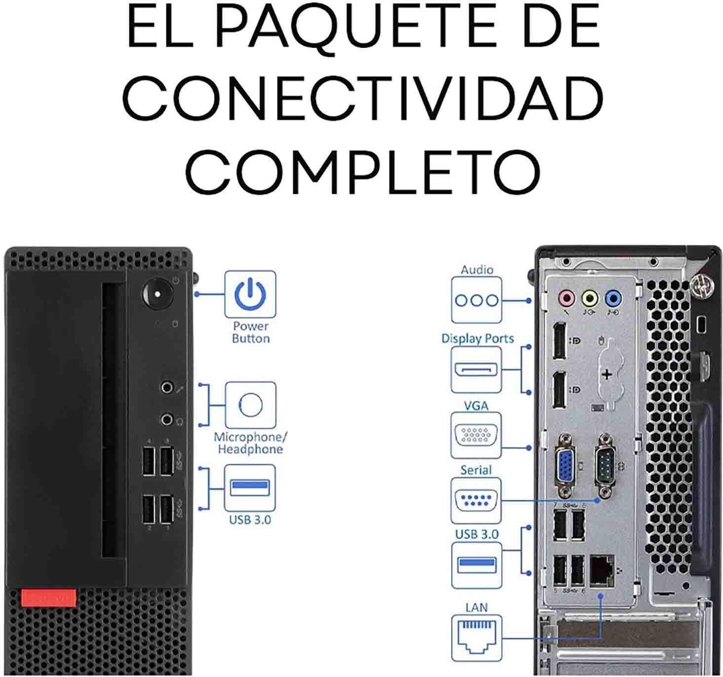 Lenovo M700 SFF El Lenovo M700 SFF es un ordenador de escritorio compacto y potente, diseñado para satisfacer las necesidades de usuarios en entornos de oficina. Equipado con un procesador Intel Core i5-6400 y 16GB de RAM DDR4, proporciona un rendimiento eficiente para tareas de productividad y multitarea. Su SSD de 512GB garantiza un arranque rápido y un acceso ágil a los datos. Viene con Windows 10 preinstalado, ofreciendo una experiencia de usuario moderna y amigable.Características Modelo: Lenovo M700 SFF Procesador: Intel Core i5-6400 Memoria RAM: 16GB DDR4 Almacenamiento: 512GB SSD Sistema Operativo: Windows 10 Gráficos: Intel HD Graphics 530 Conectividad: USB 3.0, USB 2.0, HDMI, DisplayPort, Ethernet, Wi-Fi (opcional), Bluetooth (opcional) Dimensiones: 34.5 × 10.5 × 30.0 cm Peso: 4.5 kgBeneficiosEste equipo es ideal para usuarios que necesitan un sistema fiable y eficiente para tareas diarias, ofreciendo un equilibrio perfecto entre rendimiento y tamaño compacto.¡Optimiza tu espacio de trabajo con el Lenovo M700 SFF y mejora tu productividad!.