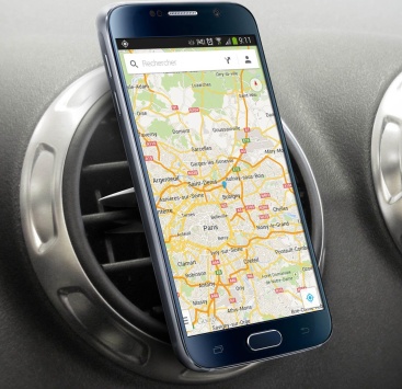 Soporte mangnético para coche Universal Smartphone. Conduce tranquilamente con el móvil a la vista. Se coloca en la rejilla del aire y sujeta tu móvl a través de un adhesivo magnético.